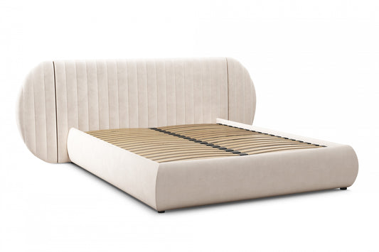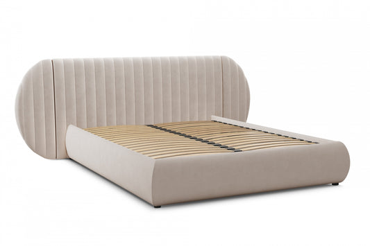 LIANOSOL Mīkstā gulta 140/160/180x200 cm ar glabātuvi, pelēks un bēšs hidrofobs samts