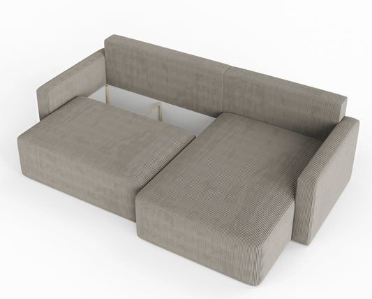 LIANOSOL Mīkstā gulta 140/160/180x200 cm ar glabātuvi, pelēks un bēšs hidrofobs samts