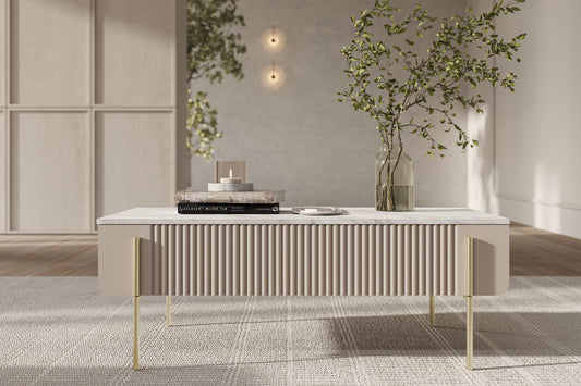 Vitrīnas skapis AUSTIN zelta kājas 100/200/45 kašmirs