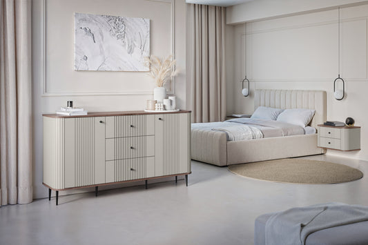 LIANOSOL Mīkstā gulta 140/160/180x200 cm ar glabātuvi, pelēks un bēšs hidrofobs samts