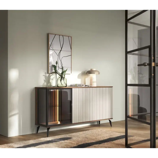 Vitrīnas skapis AUSTIN zelta kājas 100/200/45 kašmirs