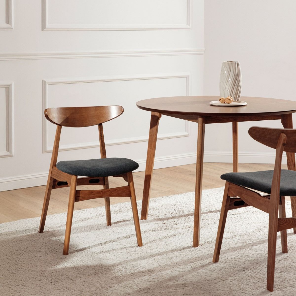 Materiāls Krēsls ir izgatavots no augstas kvalitātes dižskābarža koka, nodrošinot izturību un stabilitāti. Polsterētais pelēkais sēdeklis ir ne tikai estētiski pievilcīgs, bet arī ērts un viegli tīrāms, padarot to par ideālu izvēli ikdienas lietošanai. Papildinformācija Svars: 5,25 kg Augstums no zemes līdz sēdeklim: 45 cm