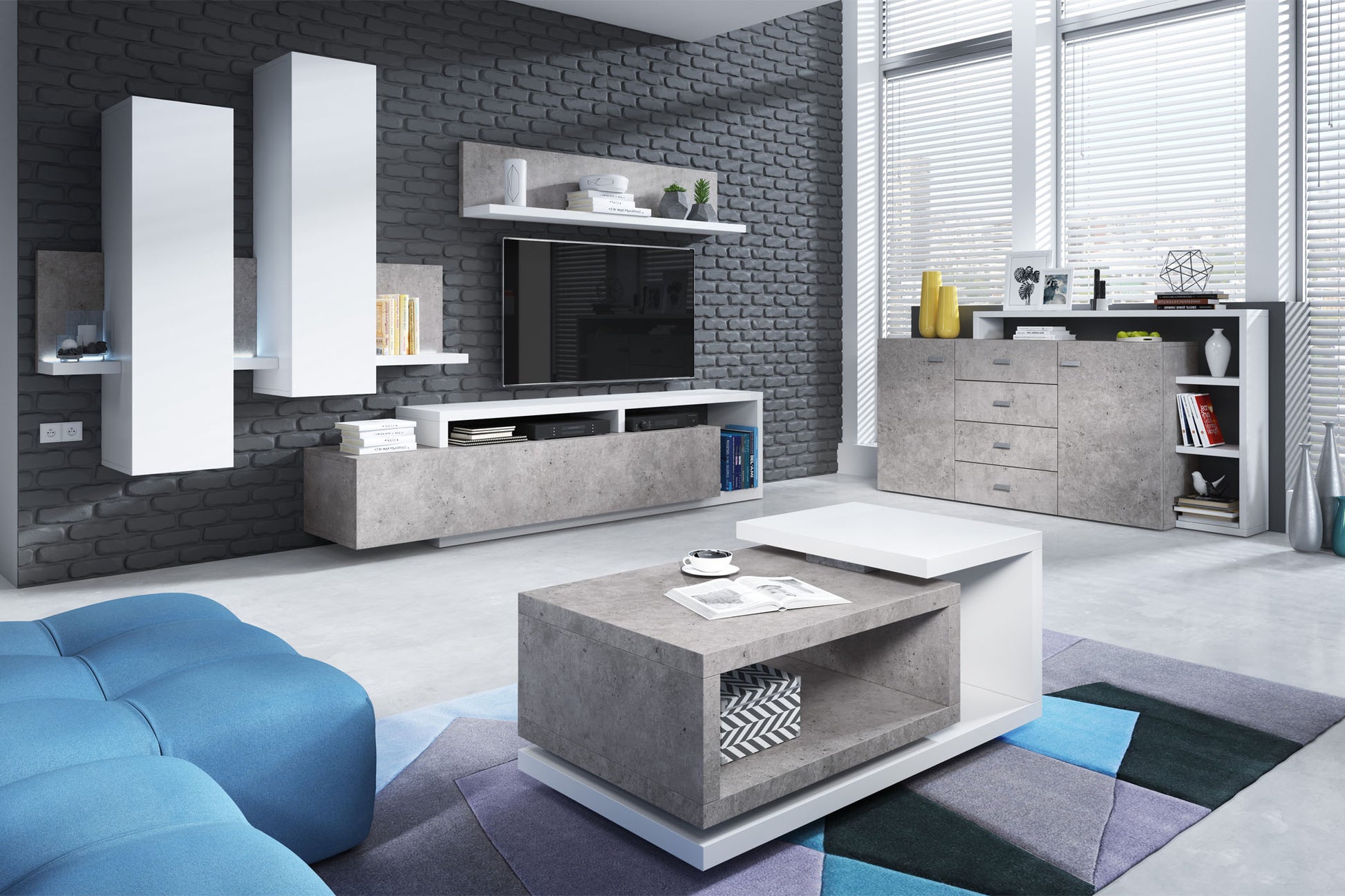 Asimetriskas struktūras veido unikālu dzīvojamo sienas vienību, kas apvieno funkcionalitāti un moderno mākslu, un abām ir svarīga loma mūsdienīgā interjerā.