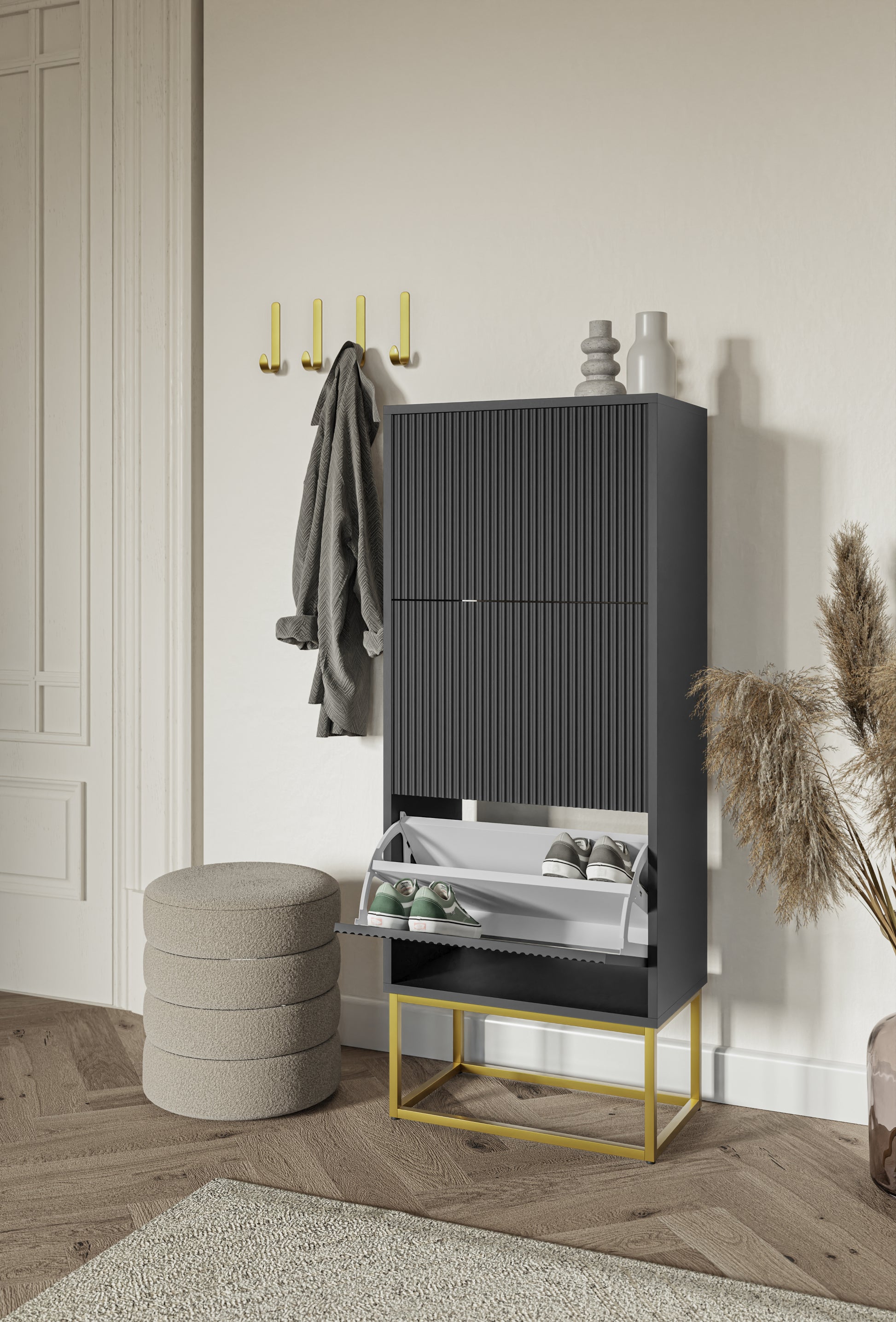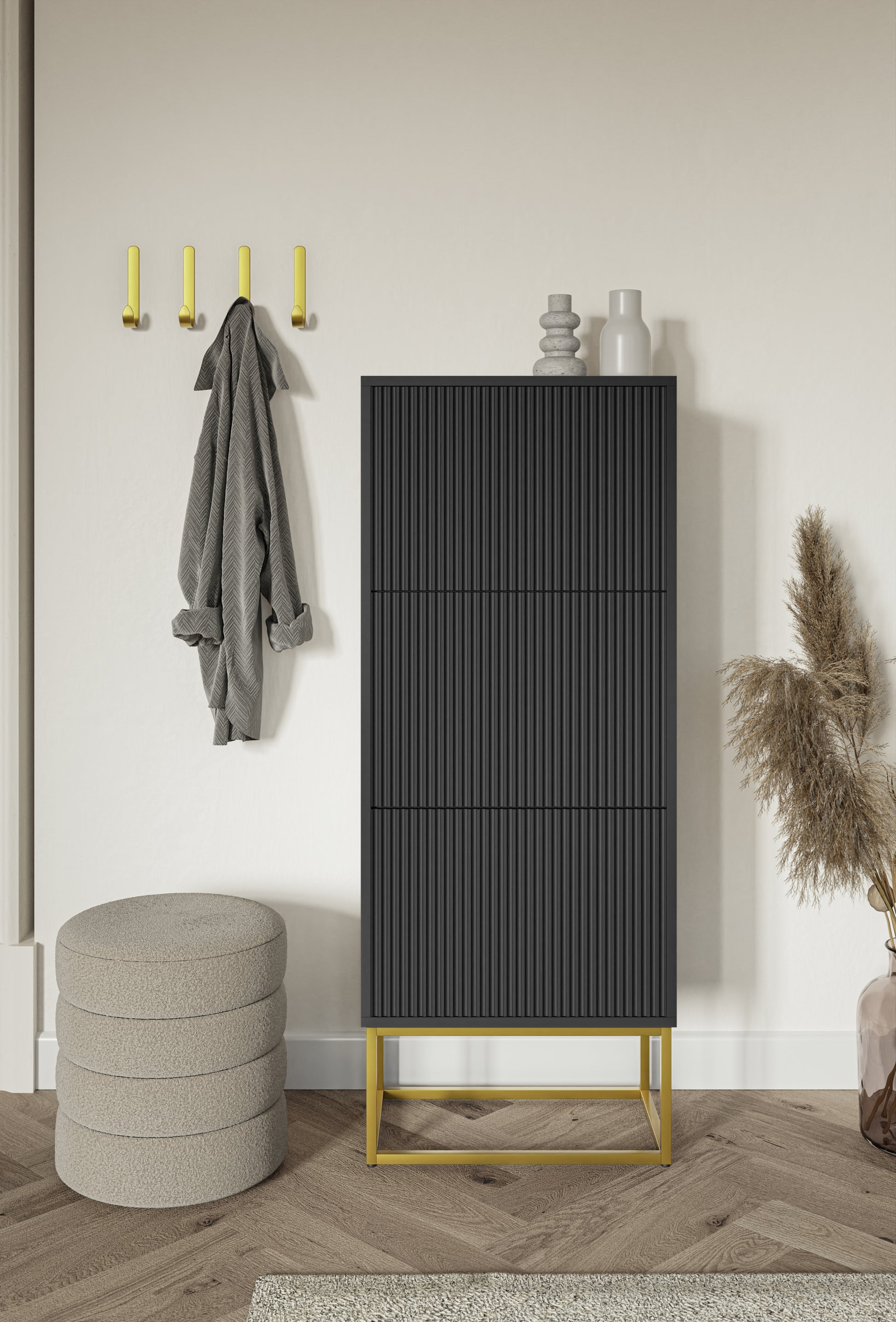 Apavu skapis Velda 50/30/125 cm melns/zelts