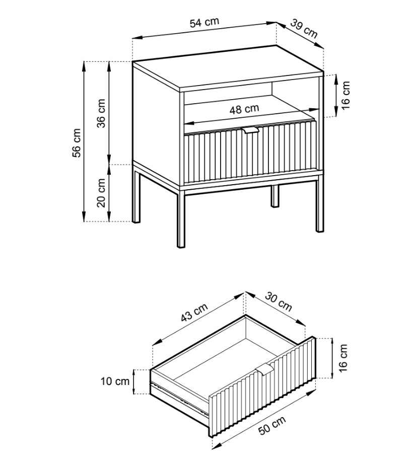 Korpuss un fasādes izgatavotas no augstas kvalitātes laminētas skaidu plātnes un MDF.