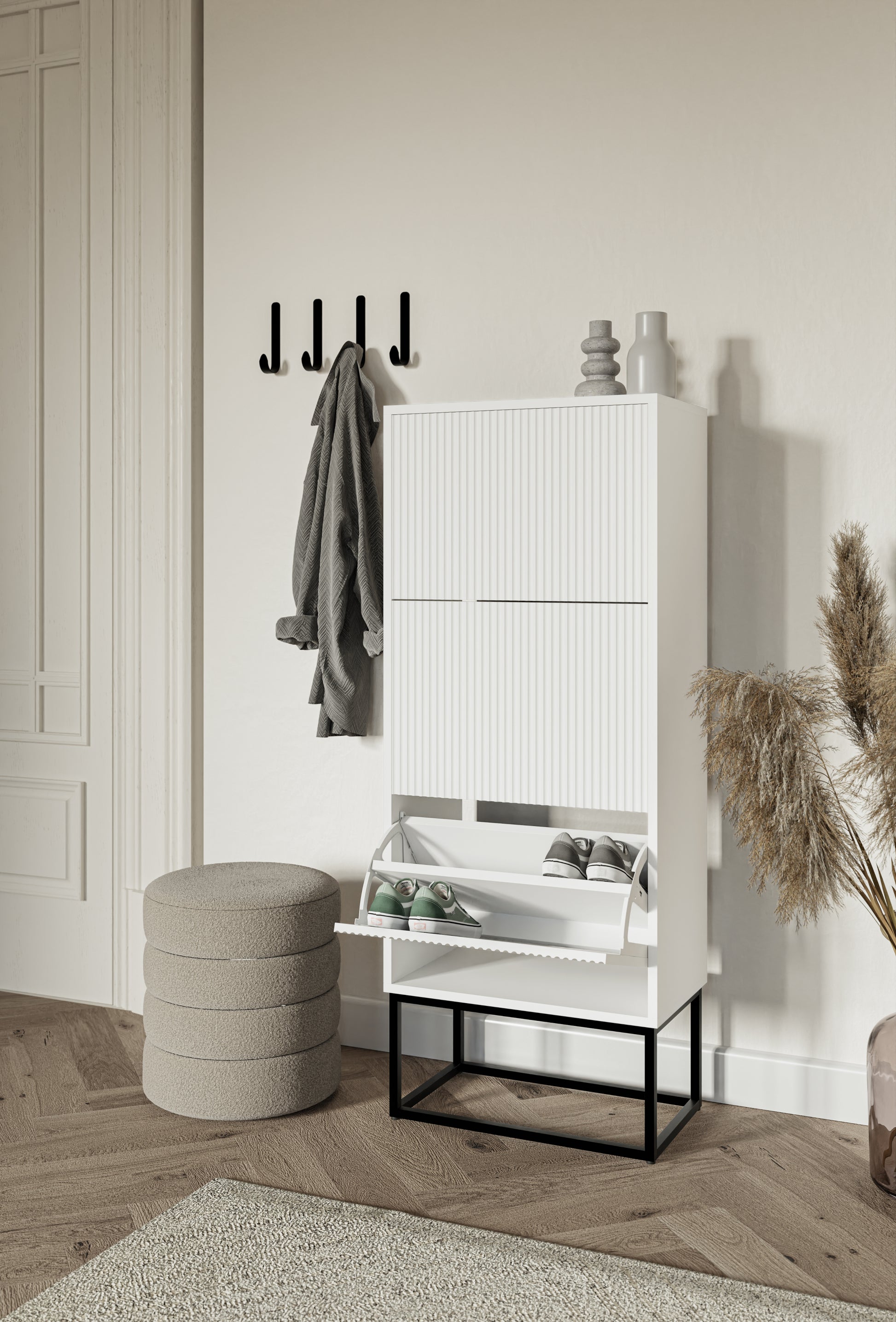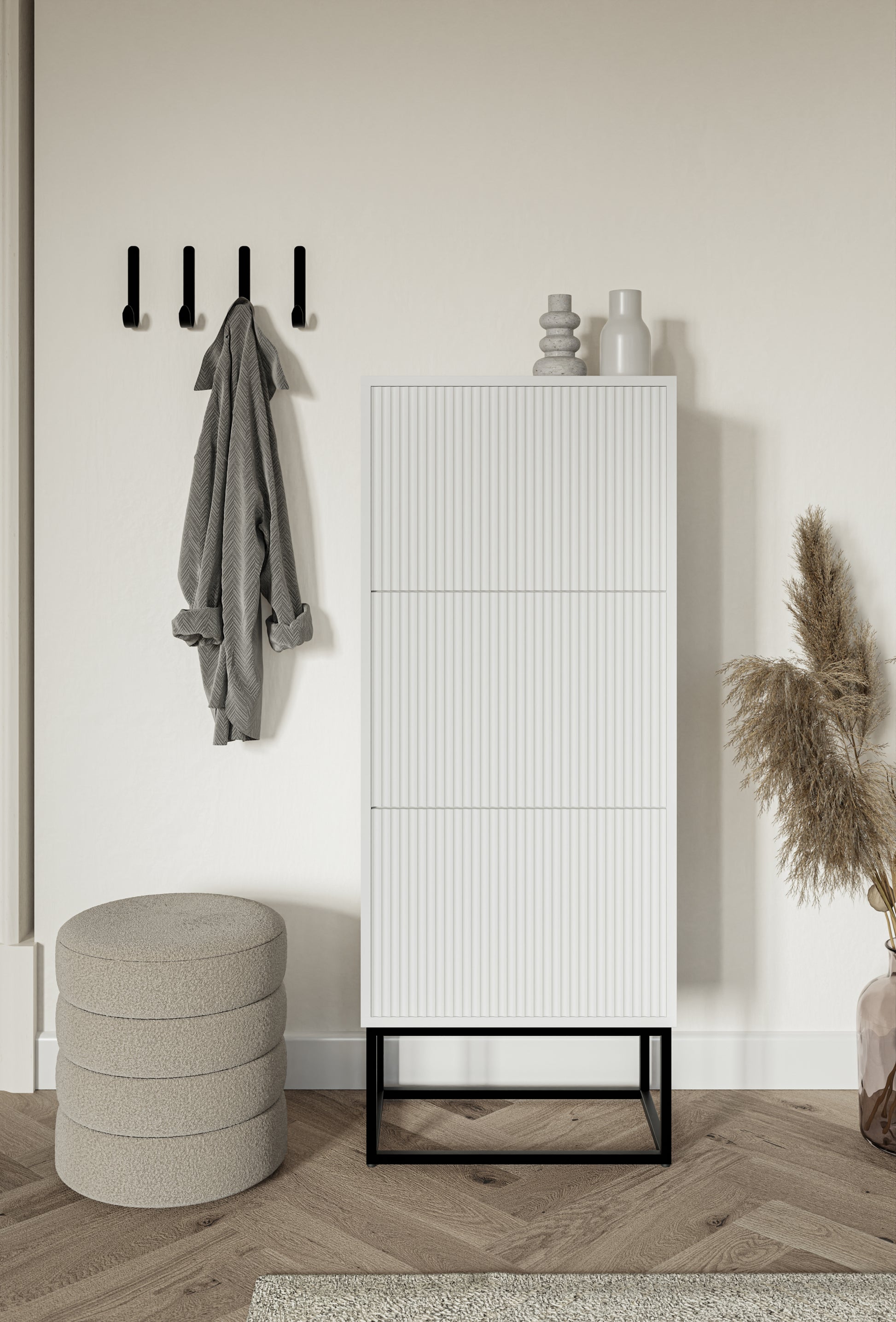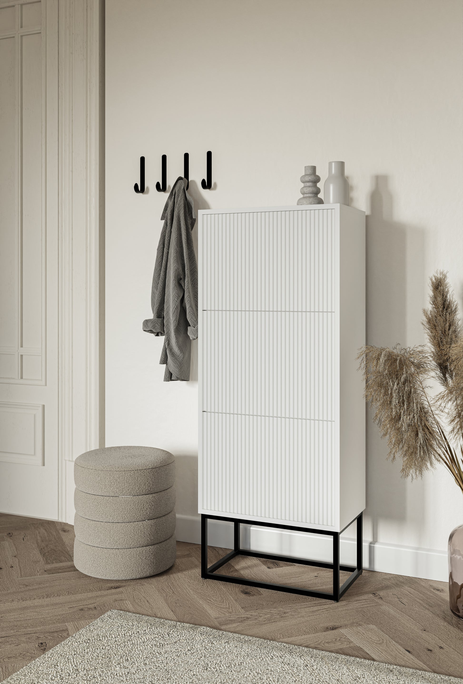 Apavu skapis Velda 50/30/125 cm balts/melns
