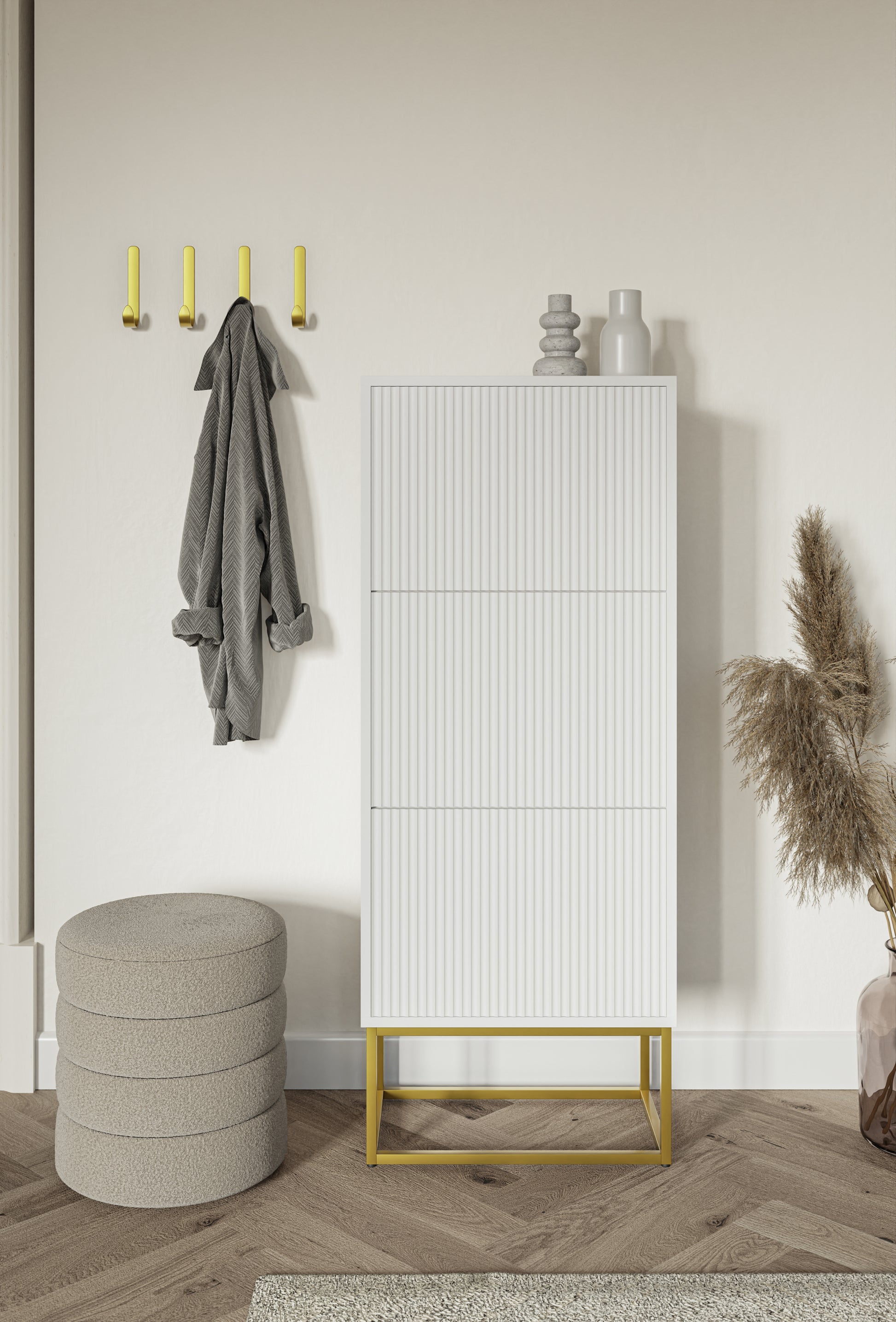 Apavu skapis Velda 50/30/125 cm balts/zelts