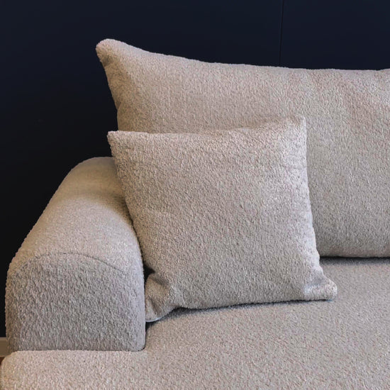 Stūra dīvāns ir polsterēts ar Abriamo 04 strukturālo audumui krēmkrāsas krāsā,