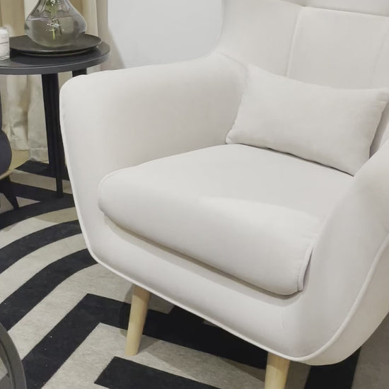 DENCE Krēmkrāsas atpūtas krēsls ar spārniem no viegli tīrāma samta auduma, buka koka kājas