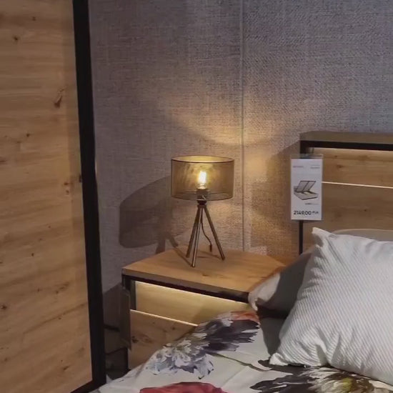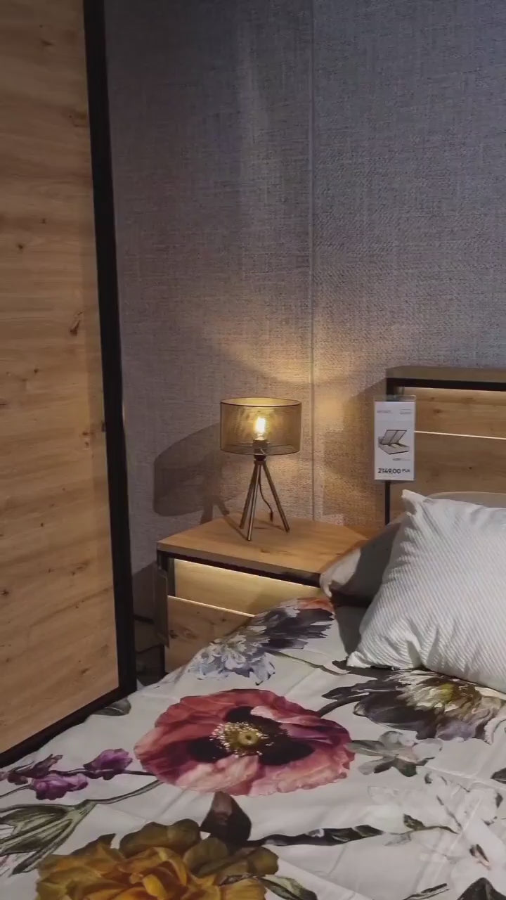 QANT naktsgaldiņš lieliski papildinās modernu guļamistabu. Tam ir divas ietilpīgas atvilktnes , kurās varēsiet ievietot visas mazās lietas, ko vēlaties atrast blakus gultai. Zemā, bet lielajā augšdaļa ļaus novietot lampu un modinātāju vai nolikt savu mīļāko grāmatu. Melnā un amatnieciskā ozola kombinācija ar LED apdari radīs elegantu un mūžīgu atmosfēru interjerā.