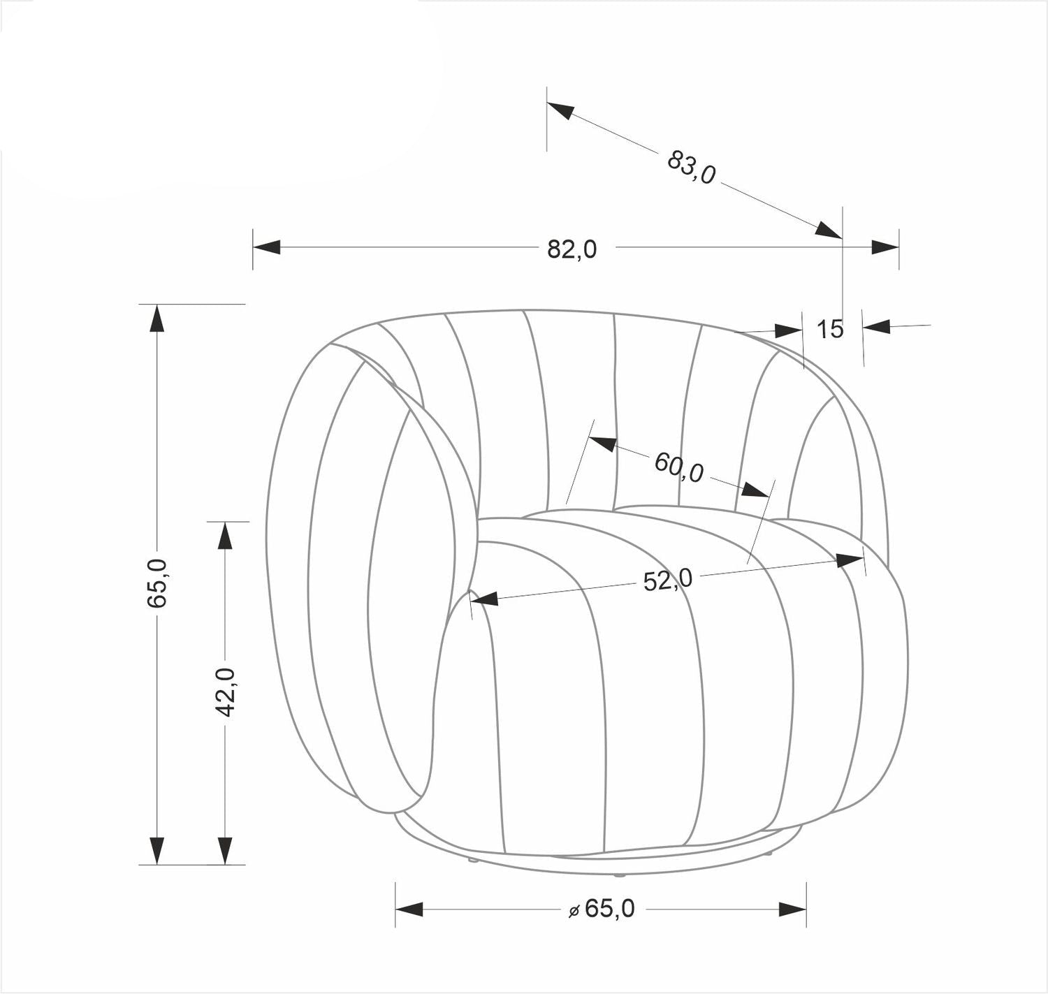 Izmēri: 82/83/65/42 cm,