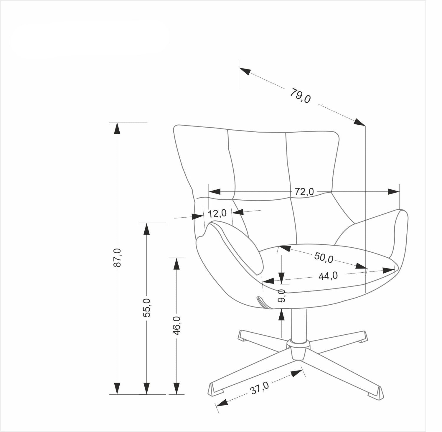 Izmēri: 72/79/87/46 cm,