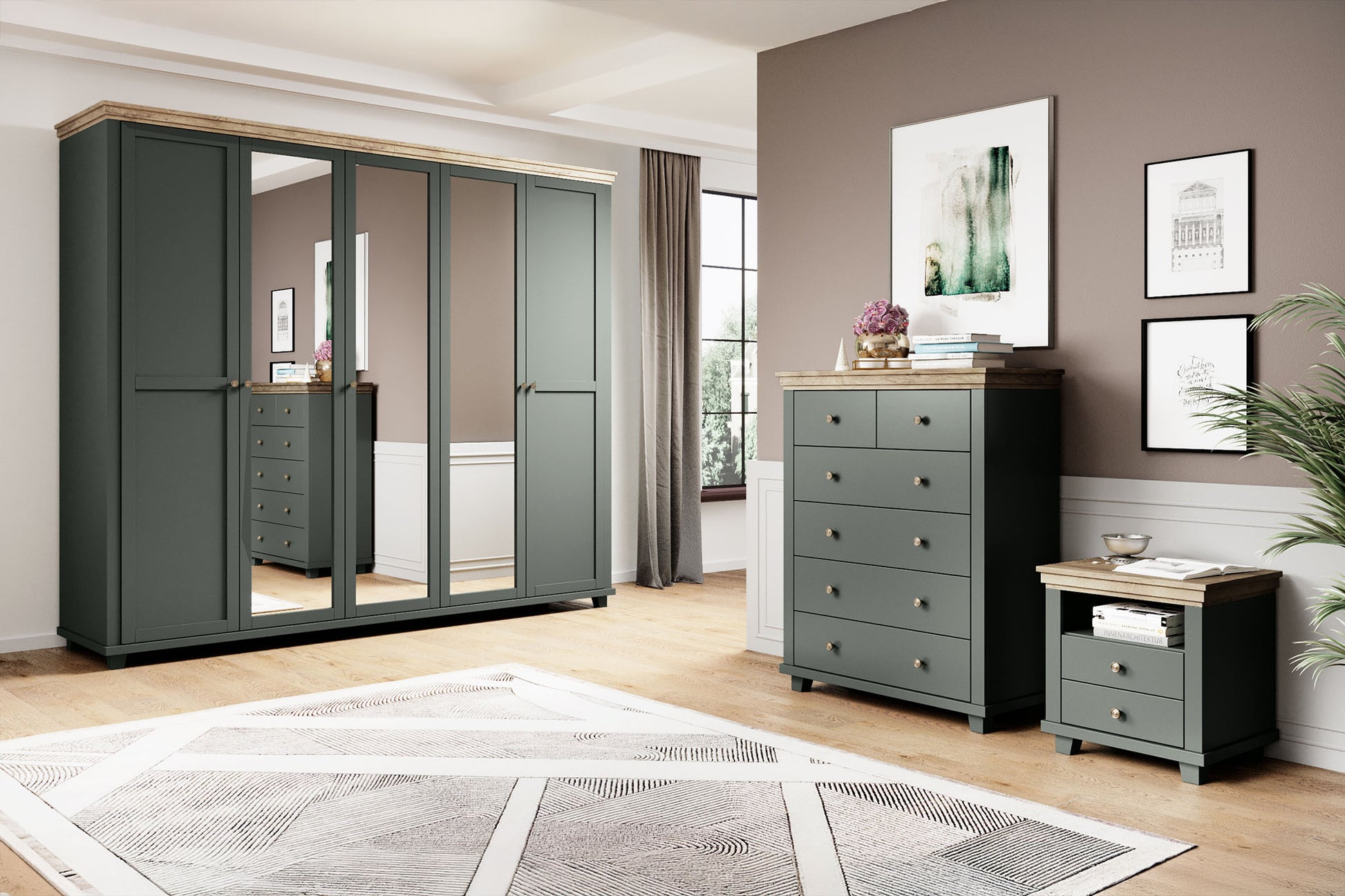 Praktiskās kumodes nodrošina daudz vietas mantu glabāšanai, vienlaikus nemanāmi pieskaņojoties pārējai kolekcijai, radot vienotu un harmonisku izkārtojumu.