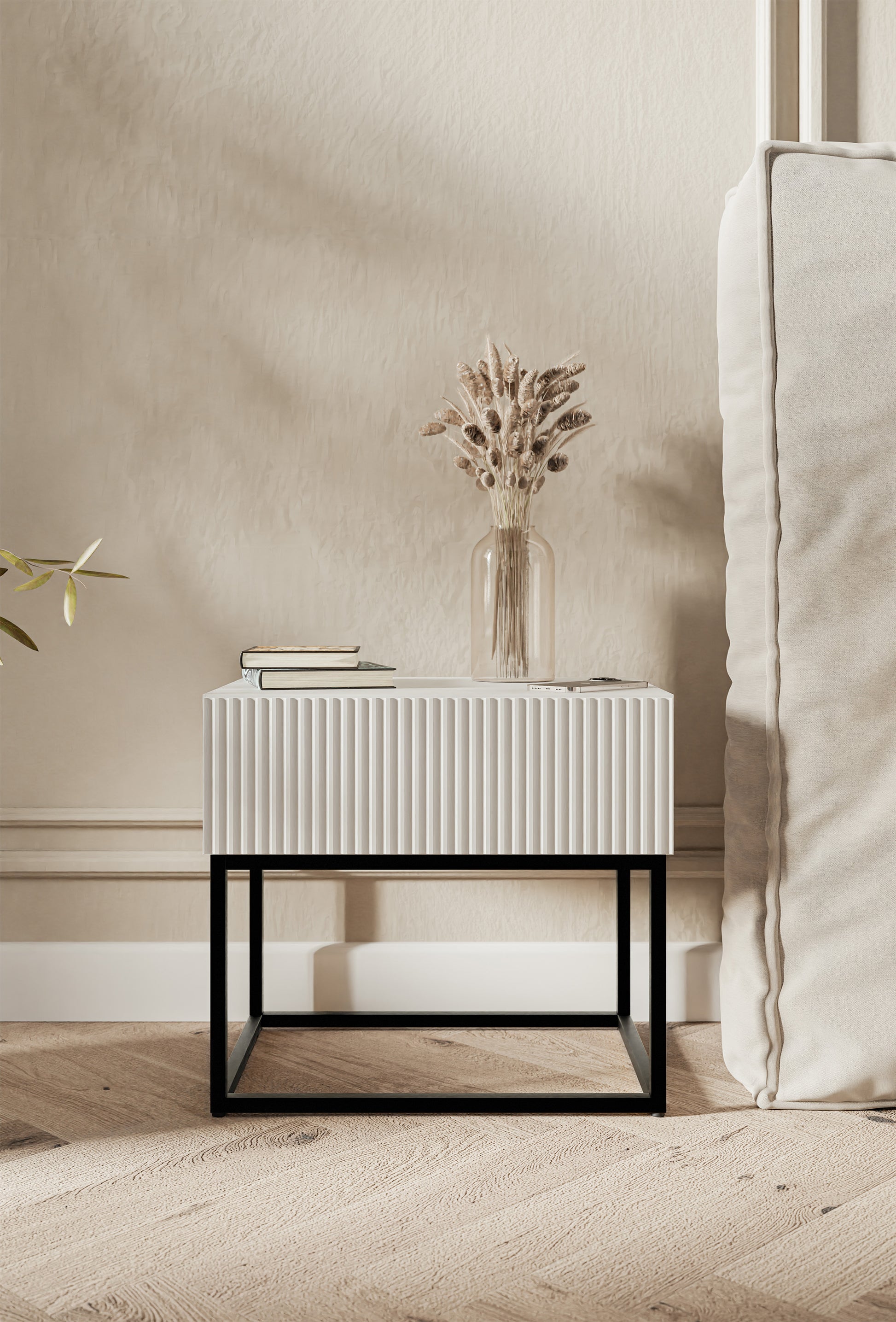 Naktsskapis Velda 50/44/35 cm balts/melns